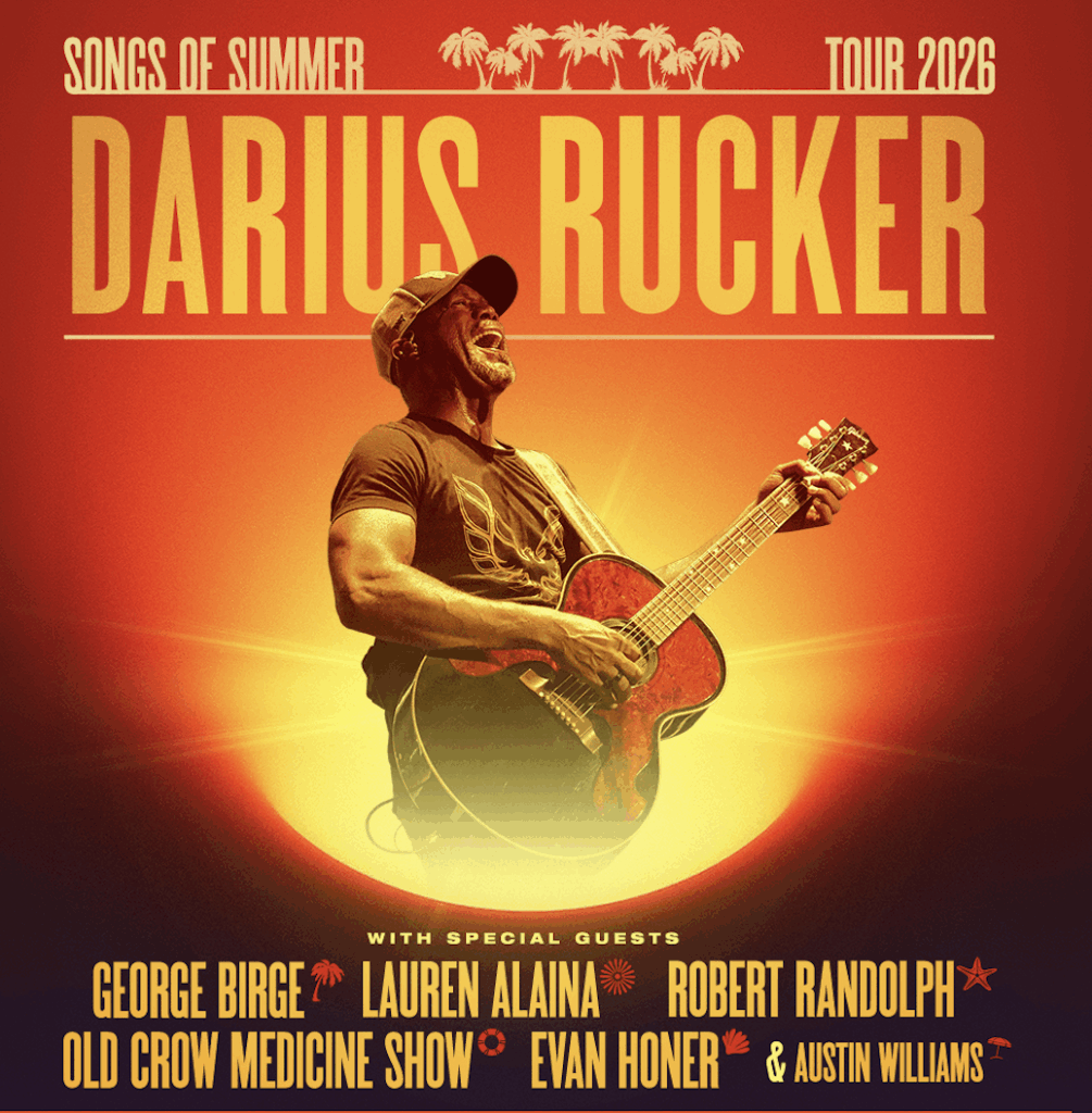 Darius Rucker hits the road this summer with his 20-city Songs of Summer Tour, bringing his signature baritone voice and fan-favorite hits to amphitheaters and iconic venues nationwide. Promoted by Live Nation, the 2026 trek features special guests Lauren Alaina, George Birge, Evan Honer, Old Crow Medicine Show, Robert Randolph and Austin Williams joining select dates.